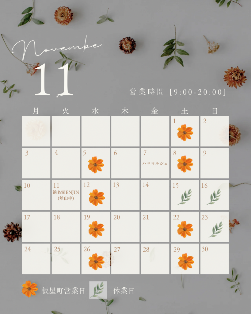 11月の営業日、イベントスケジュールのアナウンスです📢